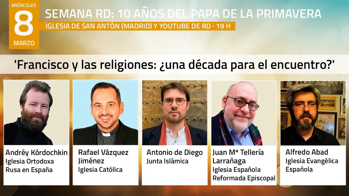 Participarán, entre otros, Andréy Kórdochkin, de la Iglesia Ortodoxa Rusa en España, Rafael Vázquez Jiménez, por parte de la Iglesia Católica; Antonio de Diego, de Junta Islámica; Juan María Tellería Larrañaga, de la Iglesia Española Reformada Episcopal; y Alfredo Abad, por parte de la Iglesia Evangélica Española. Todos ellos, moderados por el periodista José Lorenzo. Y, como el resto, también podrás seguirlo a través de nuestra web y nuestras redes sociales.