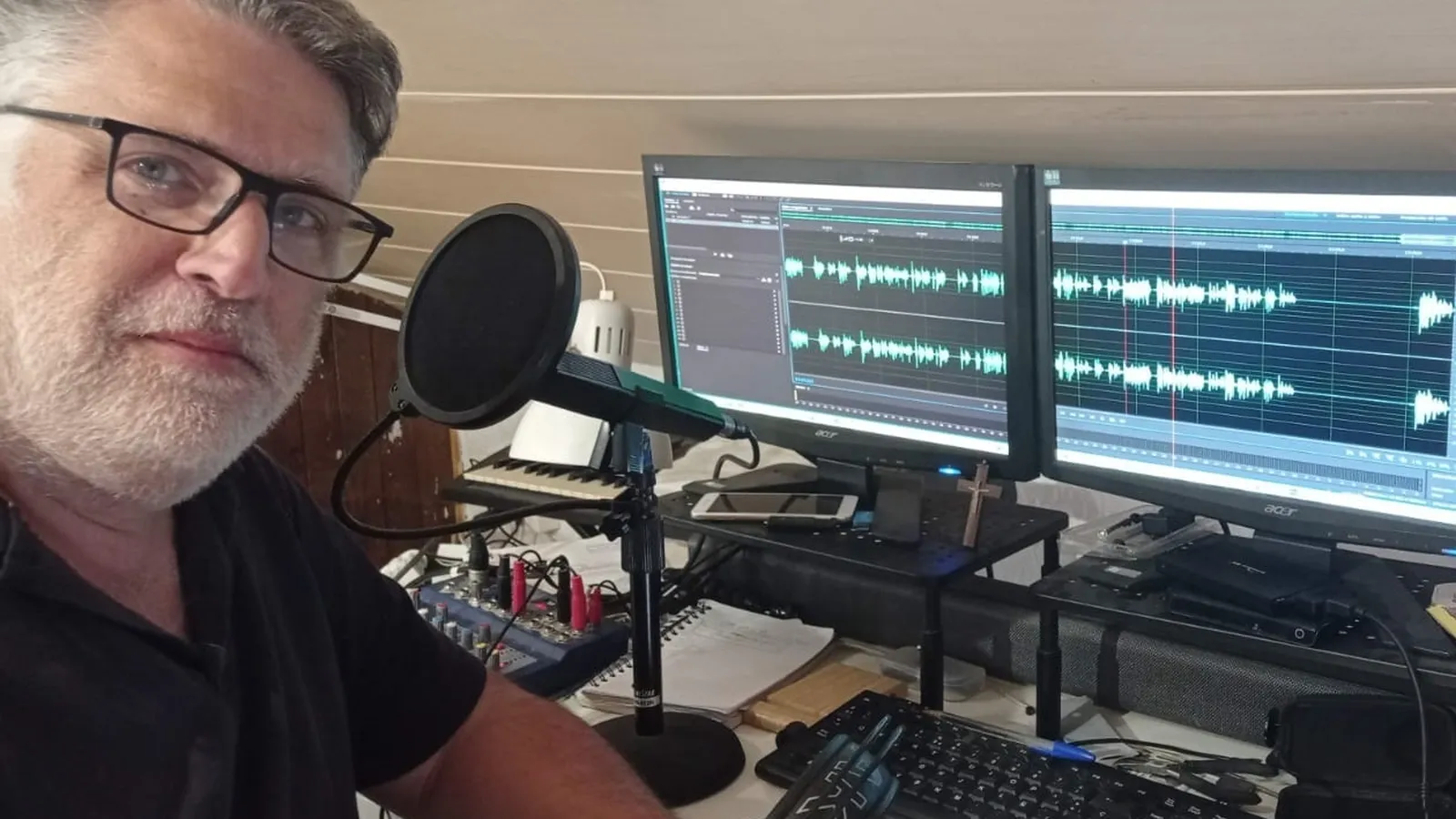 Con la recomendación de San Pablo y desde un pequeño estudio situado en su casa, en la localidad de Mediona, en el Alt Penedès, el locutor Joan-Albert Lligonya (Badalona, 1969) sigue sumando minutos de grabación sonora a un proyecto que la ha acompañado desde 2020, y que verá terminar, con toda probabilidad, estos últimos meses de 2024: se trata de Audiobiblia, un trabajo que permitirá escuchar, profesionalmente y por primera vez en la historia de la lengua catalana, los textos sagrados que conforman la Bíblia. Más concretamente, la Biblia Catalana Interconfesional, la versión más moderna y cuidada de la Biblia en catalán.