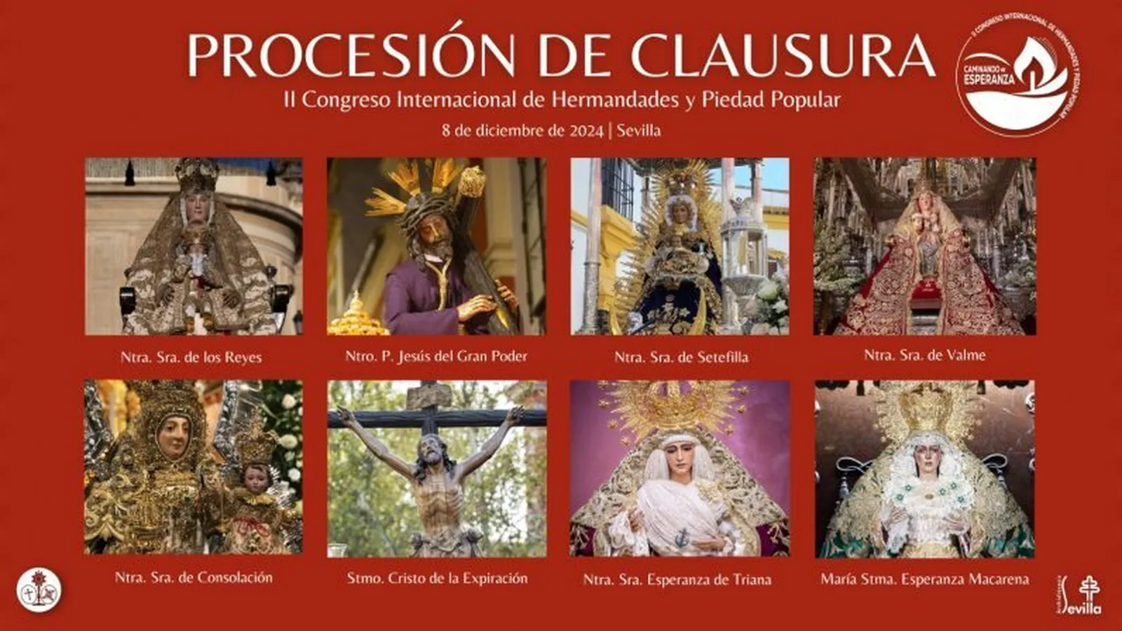 Las sagradas imágenes del Santísimo Cristo de la Expiración y Nuestra Señora de la Esperanza de Triana serán trasladadas en la tarde del día 7 de diciembre a la Catedral. Las de Nuestro Padre Jesús del Gran Poder y Nuestra Señora de la Esperanza Macarena efectuarán su traslado en la madrugada del domingo 8 de diciembre. Los horarios e itinerarios de estos traslados serán dados a conocer en su momento por las distintas hermandades tras recibir el visto bueno del Consejo, el Ayuntamiento y el CECOP.
