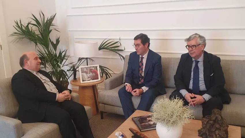 Los presidentes de la Confederación Española de Organizaciones Empresariales (CEOE), Antonio Garamendi, y de la Confederación de Empresarios de Galicia (CEG), Juan Vieites visitaron este pasado 3 de abril al arzobispo de Santiago, monseñor Francisco Prieto. En este encuentro conversaron sobre el II Encuentro de Empresarios que tendrá lugar en Santiago de Compostela la próxima semana.