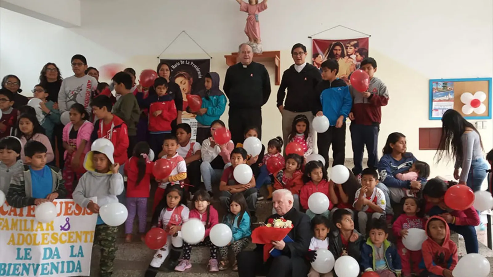A continuación, ha visitado la parroquia del misionero valenciano César Buendía, donde cientos de feligreses y catequistas le han recibido con canciones y pancartas de bienvenida, rodeadas de globos, en la capilla de Santa Rosa, en la zona conocida como Mercurio Alto, la más pobre de cuantas integran esta parroquia. Allí ha bendecido a niños y a sus madres y luego se ha dirigido al colegio San Vicente Ferrer, donde ha mantenido un encuentro con las familias de los alumnos.