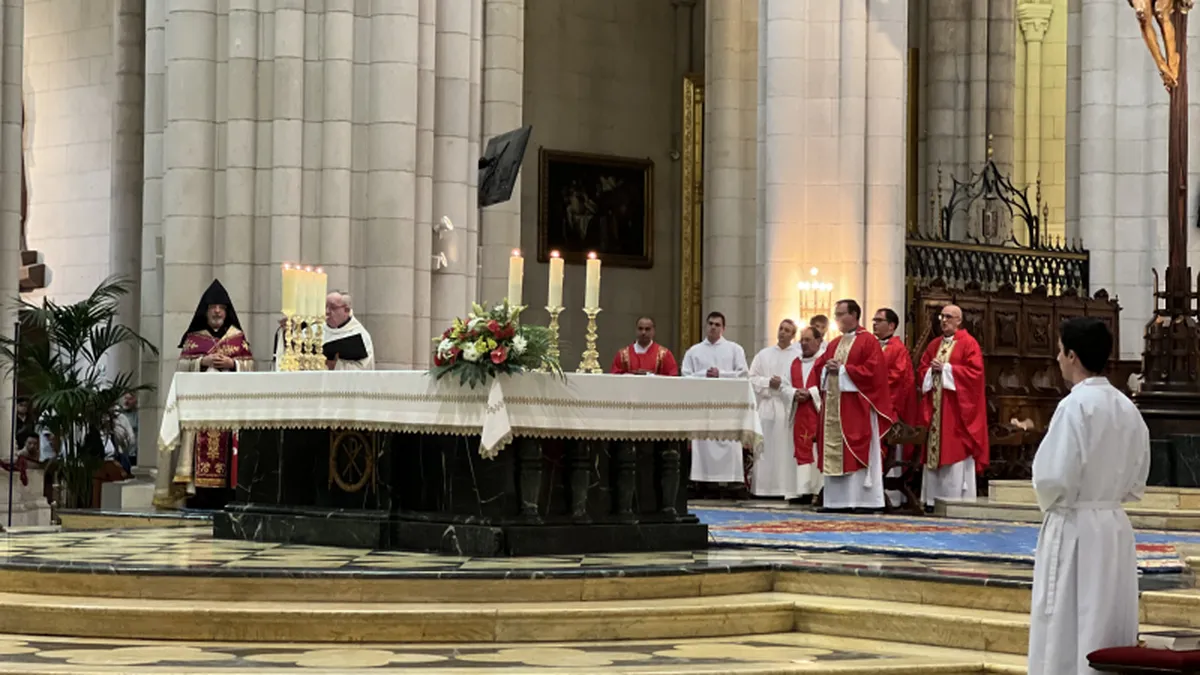 Al finalizar la Eucaristía, el arzobispo armenio ha querido agradecer «la bendición» que supone «esta relación cordial y el espíritu de cooperación entre las iglesias, para ser el mejor ejemplo de unidad, reconciliación, paz y justicia». Actualmente, hay una comunidad de 40.000 armenios en España, y se concentran en Madrid, Barcelona, Valencia, Málaga, Sevilla y otras ciudades. «En todas estas ciudades, la Iglesia Católica ampara a los fieles armenios cuando estos celebran liturgias según la tradición armenia».
