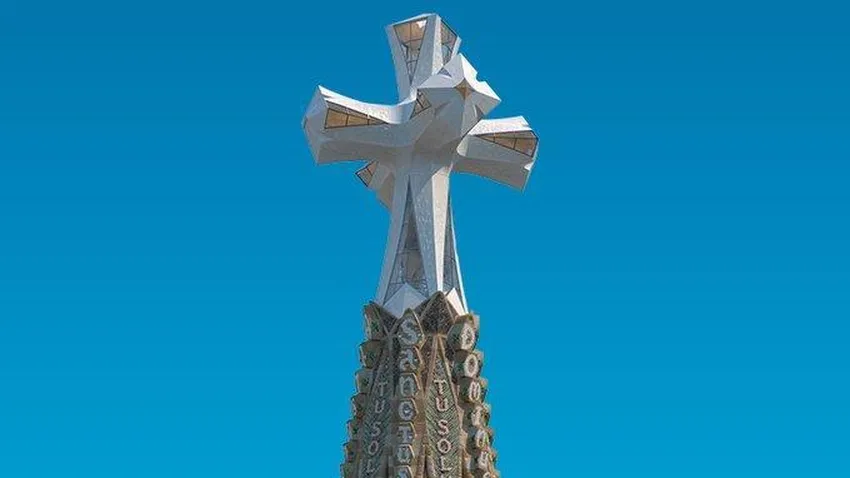 La torre de Jesucristo de la Sagrada Familia ha terminado la instalación del duodécimo nivel de panales y ha alcanzado los 142,5 metros de altura, lo que significa el fin del cuerpo de la estructura y el comienzo de la fase final, con la construcción del terminal con la cruz.