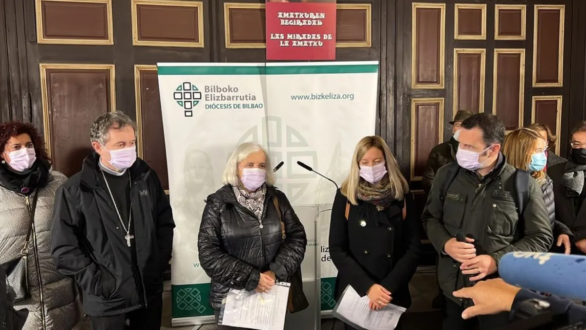 A las 11 de la mañana, las campanas del santuario han repicado durante un minuto en el que las personas concentradas han guardado silencio. Posteriormente, una trabajadora del centro Ekin de Caritas Otxarkoaga, Esther Casquero y la religiosa Oblata, directora del proyecto `Leiho zabalik´ de acogida a mujeres en situación de prostitución, María Luisa del Pozo, han leído una nota de la Diócesis de Bilbao. El comunicado subraya la urgencia de acabar con la "lacra" de la violencia contra las mujeres y las niñas también aquí en Bizkaia donde "hay mujeres víctimas de trata o que sufren maltratos psicológicos, físicos o sexuales".