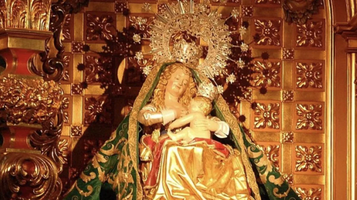 La corona de la Virgen está rematada por una paloma de muy fina traza.