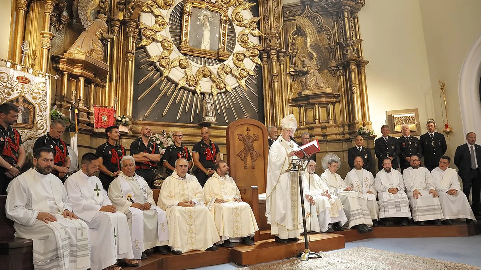 En este sentido, ha subrayado que «la gran dadora del anuncio de la presencia de Dios entre los hombres es la Santísima Virgen María» y, volviendo la vista al rosario que porta en el cuadro que rescató Isabel Tintero, ha incidido en que «nos enseña cómo ser discípula misionera»: «Ella lo fue, participando de una manera activa en los misterios gozosos, dando presencia a Dios en este mundo; también en los misterios dolorosos, donde siente el dolor de madre viendo cómo da su Hijo la vida por nosotros; en los misterios gloriosos participando de la gloria de su Hijo que regala y conquista para todos los hombres; en los misterios luminosos con los que el hombre encuentra la luz, se hace discípulo misionero y crece como discípulo».