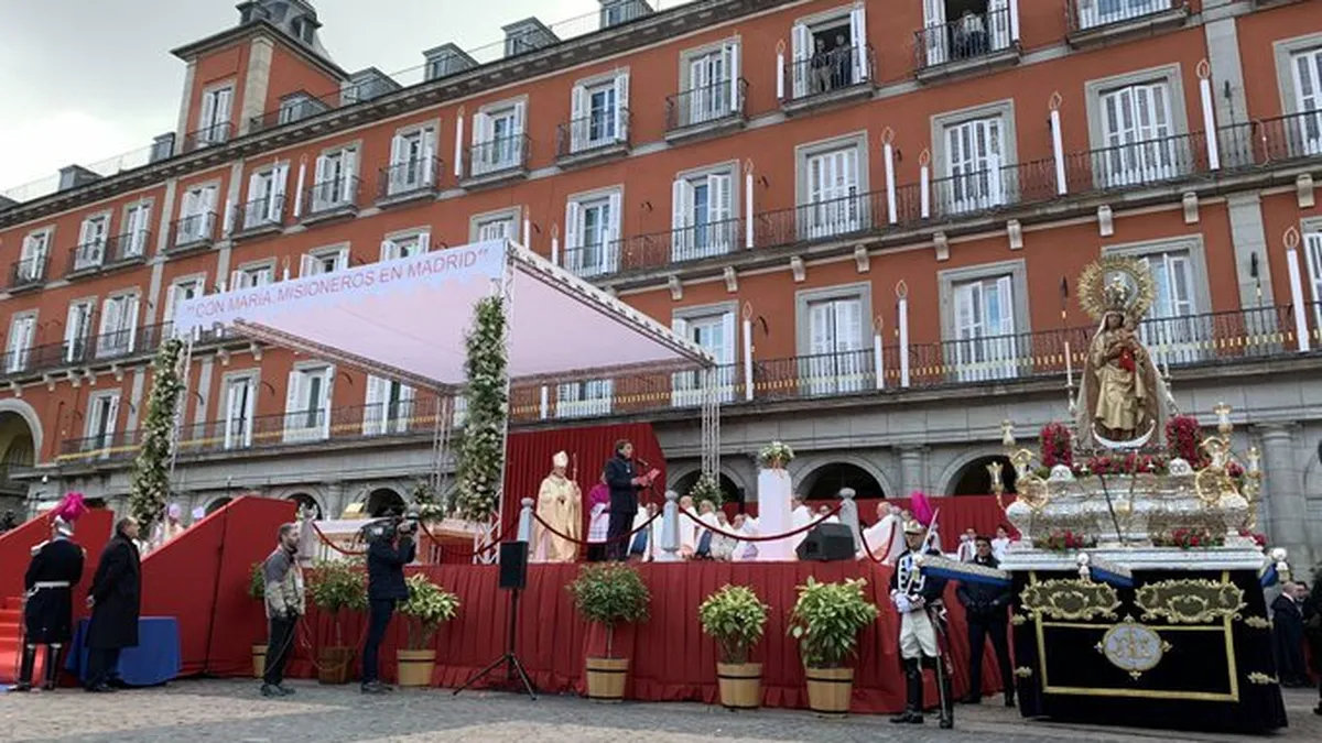 “En esta plaza Mayor, en las entrañas de Madrid, nos dice: «Mira, mira, no te hagas el distraído, hay gente sin luz, con el corazón roto, dividido y enfrentando, acércate, acércate a ellos». Que nos empuje hacia ellos nuestra Madre”, finalizó el purpurado.