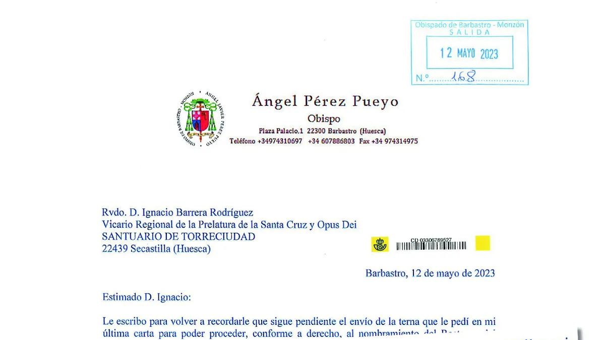 Así arranca la carta que, con fecha de 12 de mayo, envío el obispo de Barbastro-Monzón, Ángel Pérez Pueyo, al vicario regional de la Prelatura de la Santa Cruz y Opus Dei, Ignacio Barrera Rodríguez. Una carta que ha adelantado El Cruzado Aragonés y cuya veracidad ha podido confirmar RD de todas las partes implicadas.
