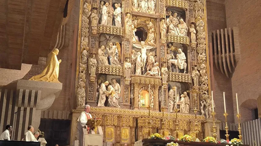 José Mairal no es un cura cualquiera en Torreciudad. Oriundo de la zona, desde muy niño participó en la Romería que cada 20 de agosto, "desde tiempo inmemorial" sirve para conmemorar a la Virgen de Torreciudad. A sus 86 años, quien el próximo 1 de septiembre se convertirá en nuevo rector del santuario (que no oratorio) fue el encargado de pronunciar la homilía, en presencia del todavía rector, Ángel Lasheras (quien pronunció el Evangelio), del vicario de la Obra en España, Ignacio Barrera y del obispo de Barbastro-Monzón, Ángel Pérez Pueyo, quien presidió la ceremonia, y que fue recibido entre aplausos por toda la feligresía.