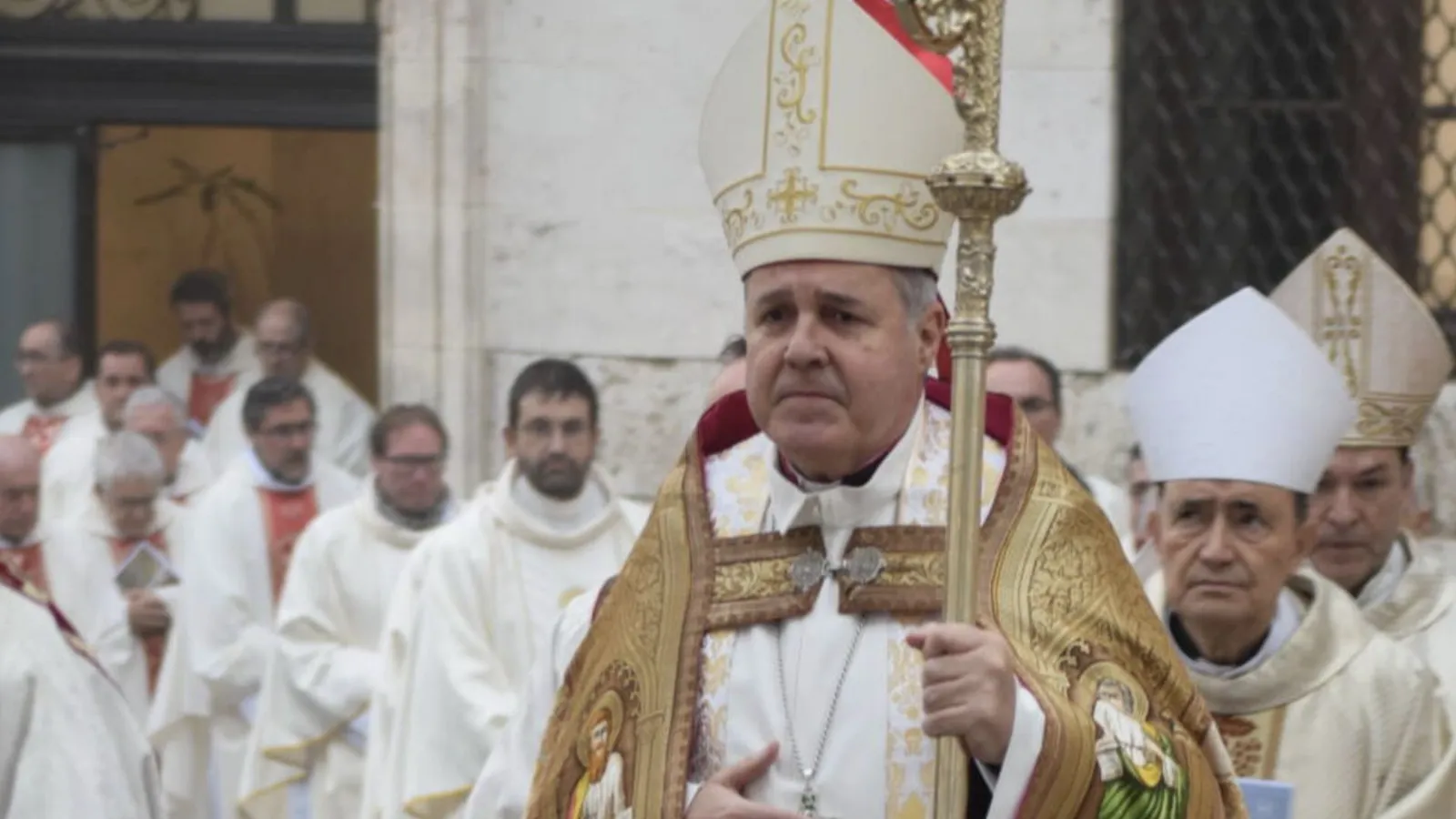 Al llegar a la Catedral, en la puerta, el arzobispo ha alzado la cruz y, mirando a la muchedumbre congregada a los pies del templo, ha dicho: «Salve, cruz de Cristo, única esperanza». Después, la procesión ha continuado hasta el altar mayor, en el que se ha situado esta cruz que permanecerá en ese emplazamiento hasta el final del año jubilar –el 6 de enero de 2026– y donde se ha desarrollado la celebración eucarística.