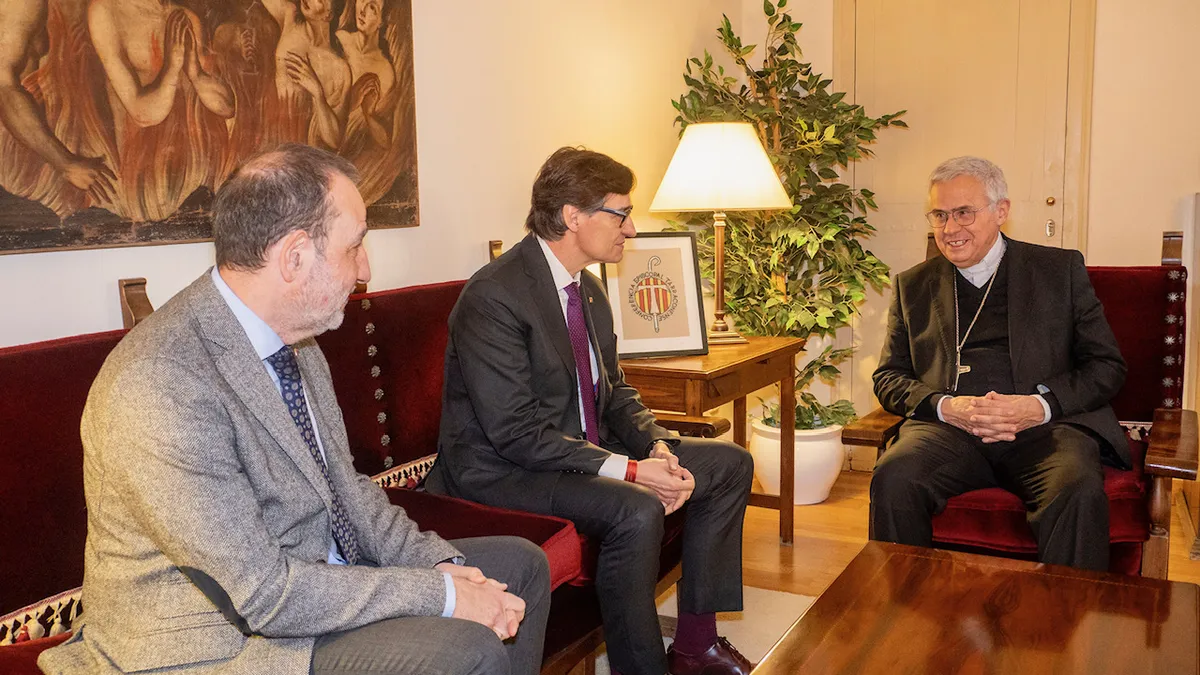 (Flama).- El presidente de la Generalidad de Cataluña, Salvador Illa, ha visitado este miércoles por la mañana, con la compañía del consejero de Justicia y Calidad Democrática, Ramon Espadaler, las dependencias del Palacio Arzobispal de Tarragona, donde han estado reunidos durante casi dos horas con su arzobispo, Joan Planellas, así como algunos de los máximos representantes de la Iglesia tarraconense, como el vicario general, Santiago Soro, e Ignasi Durany, vicario episcopal para la caridad.