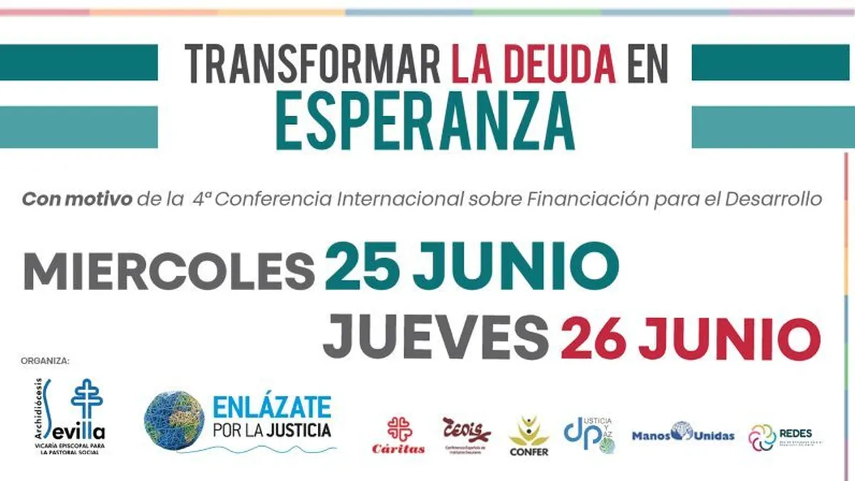 La iniciativa promovida por la Archidiócesis de Sevilla, Cáritas, Conferencia Española de Religiosos (Confer), Manos Unidas, Justicia y Paz, Enlázate por la Justicia, Red de Entidades por el Desarrollo Solidario (Redes), en colaboración con el Instituto de Desarrollo de la Universidad Loyola, se celebrará bajo el lema ‘Transformar la deuda en esperanza’. Estas organizaciones impulsarán una agenda de eventos entre el 25 de junio y el 3 de julio, para visibilizar su propuesta de reforma estructural del sistema financiero internacional.