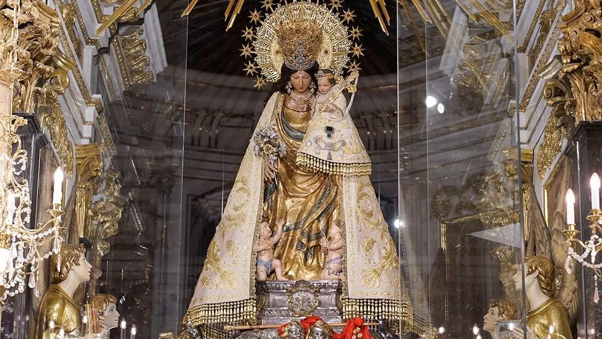 La imagen de la Virgen de los Desamparados ha amanecido este jueves luciendo el manto solidario de la 'puntaeta' que el pueblo valenciano bordó puntada a puntada para la Patrona de València por el Centenario de la Coronación en 2023, según ha informado el Arzobispado en un comunicado.