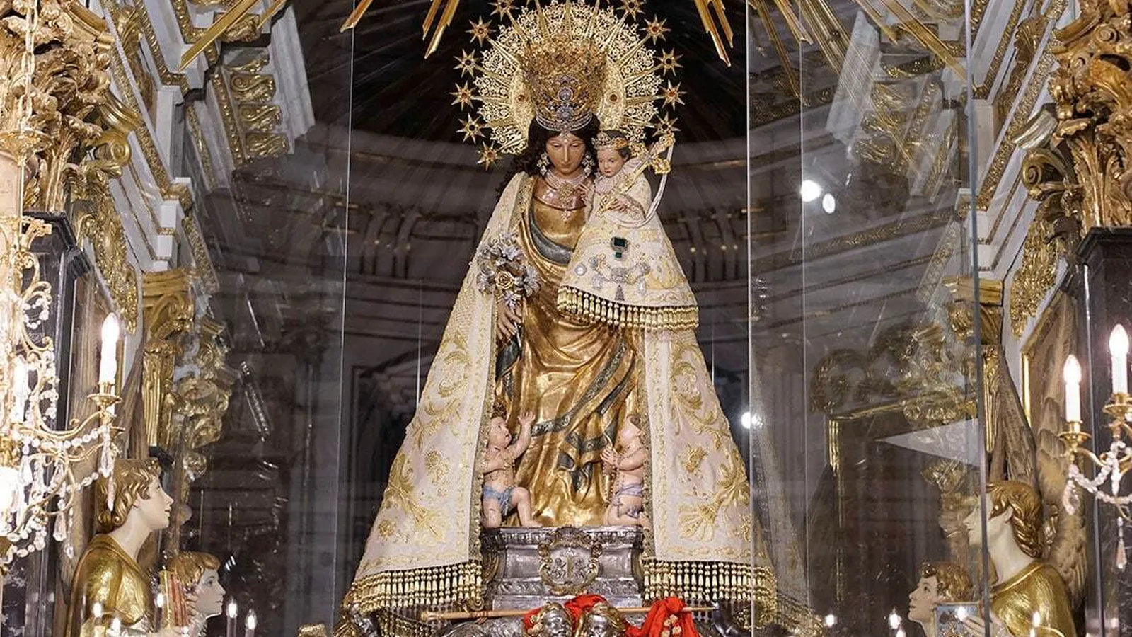 La Virgen lucirá este manto conocido como el de la 'puntaeta' hasta la Semana Santa con la idea de que su imagen pueda ir cambiando y luciendo otros mantos a lo largo de diferentes fechas o celebraciones especiales.