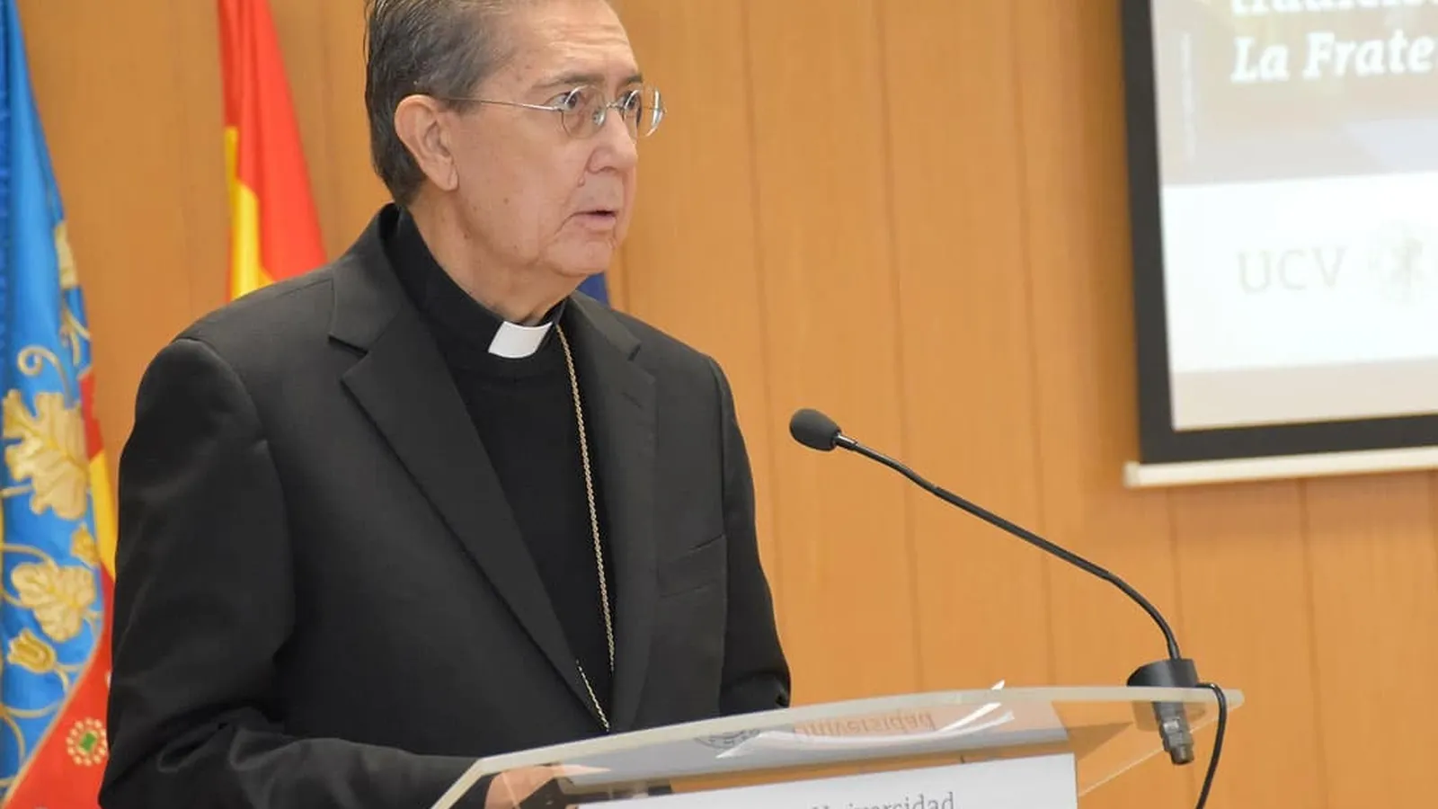 (Archivalencia).- El cardenal Miguel Ángel Ayuso, prefecto del Dicasterio para el Diálogo Interreligioso del Vaticano, ha asegurado en la Universidad Católica de Valencia (UCV) que “ahora es el momento de comenzar a construir la nueva vida de fraternidad, y esto requiere algo más que una visión política, económica o incluso ecológica. Requiere que vivamos desde lo más profundo de nuestra alma con compasión y ojos que puedan ver al otro en su necesidad”.
