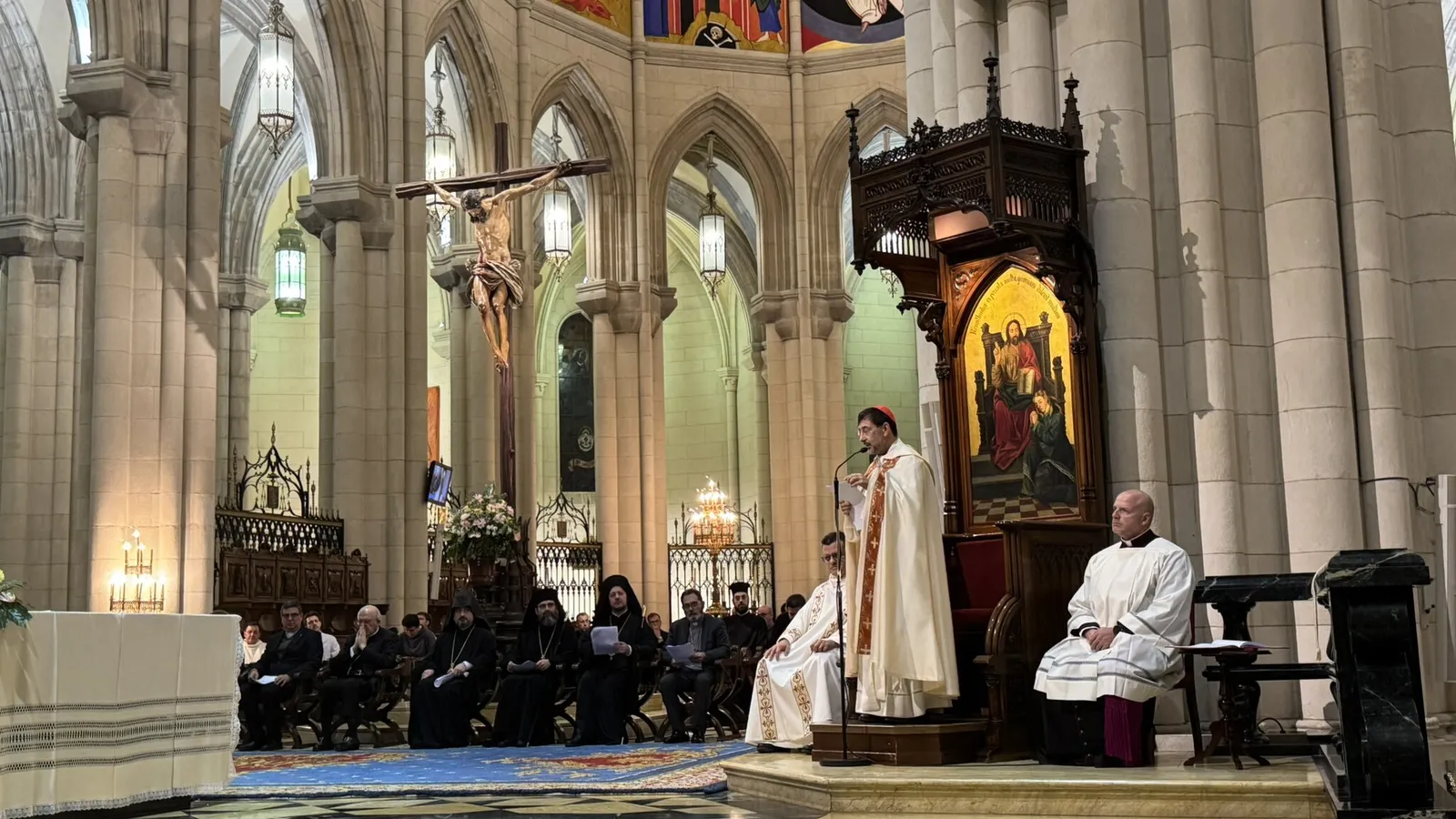 "Señor, ilumina el corazón de los violentos. Haznos instrumentos de tu paz". Centenares de personas se congregaron en la catedral de La Almudena de Madrid para rezar por la paz, en una ceremonia que contó con presencia multiconfesional y que fue presidida por el cardenal José Cobo, acompañado, entre otros, por el cardenal Osoro.
