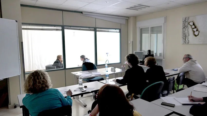 Tenemos una hermosa cámara de gesell que permite hacer prácticas con actor y con compañero y ser supervisado por los tutores y por los compañeros del propio grupo.