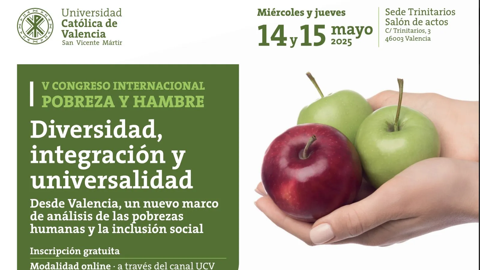 'Diversidad, integración y universalidad'. Este es el tema del V Congreso Internacional 'Pobreza y Hambre' que tendrá lugar los próximos 14 y 15 d emayo en la Universidad Católica de Valencia.