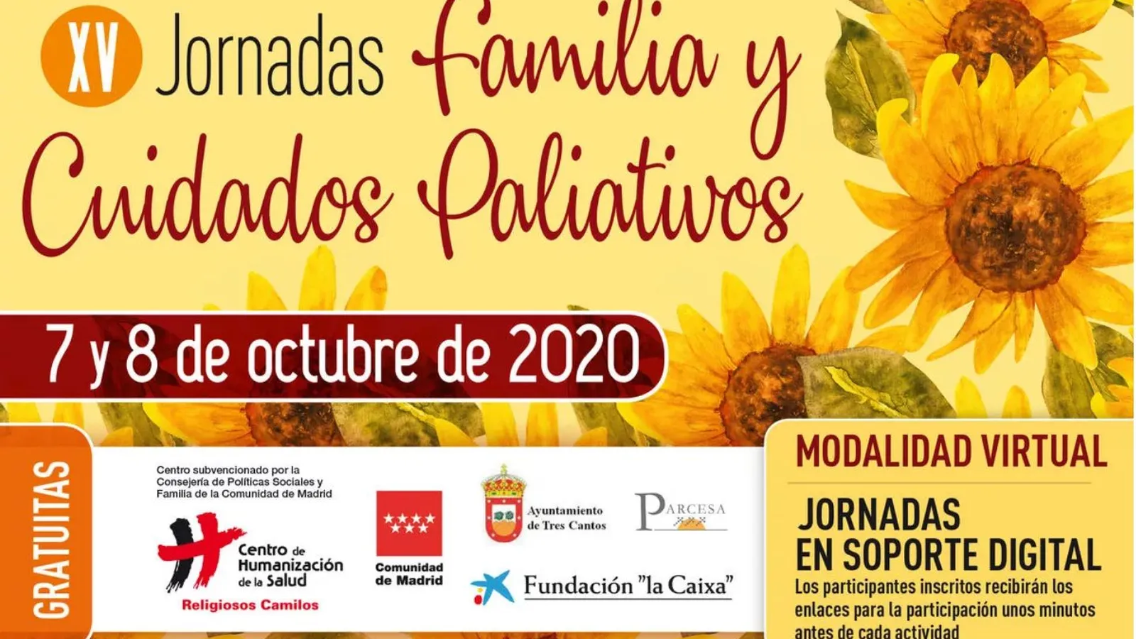 Con 250 plazas y un crédito de 6 horas lectivas, las XV Jornadas de Familia y Cuidados Paliativos son gratuitas gracias a la subvención de la Consejería de Políticas Sociales, Familia, Igualdad y Natalidad. Las personas interesadas ya pueden inscribirse a través de nuestra web.