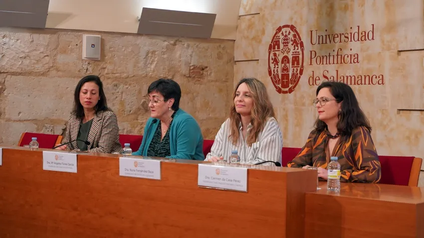 Las vicedecanas de la Facultad, María Ángeles Flores García (Enfermería); Nuria Fernández Baza (Logopedia); Catalina Loaiciga Espeleta (Fisioterapia) y Carmen da Casa Pérez (Nutrición Humana y Dietética), han sido las encargadas de inaugurar las jornadas, en un acto en el que ha contado con la asistencia de la concejala de Mayores del Ayuntamiento de Salamanca, Isabel Macías Tello.