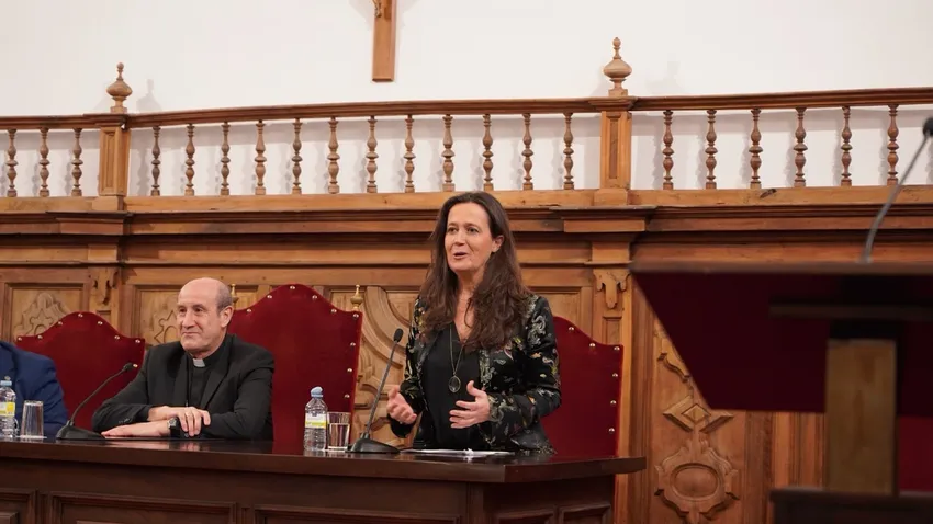 Acompañada por el obispo de Astorga, Mons. Jesús Fernández González, y por el decano de Teología, Román Ángel Pardo Manrique, la directora del Centro Nacional de Investigación sobre la Evolución Humana (CENIEH), María Martinón-Torres, ha pronunciado la conferencia ‘Homo Imperfectus: La naturaleza humana a la luz de la evolución’, título homónimo de su última obra, en la que responde a cuestiones como ¿por qué seguimos enfermando a pesar de la evolución?
