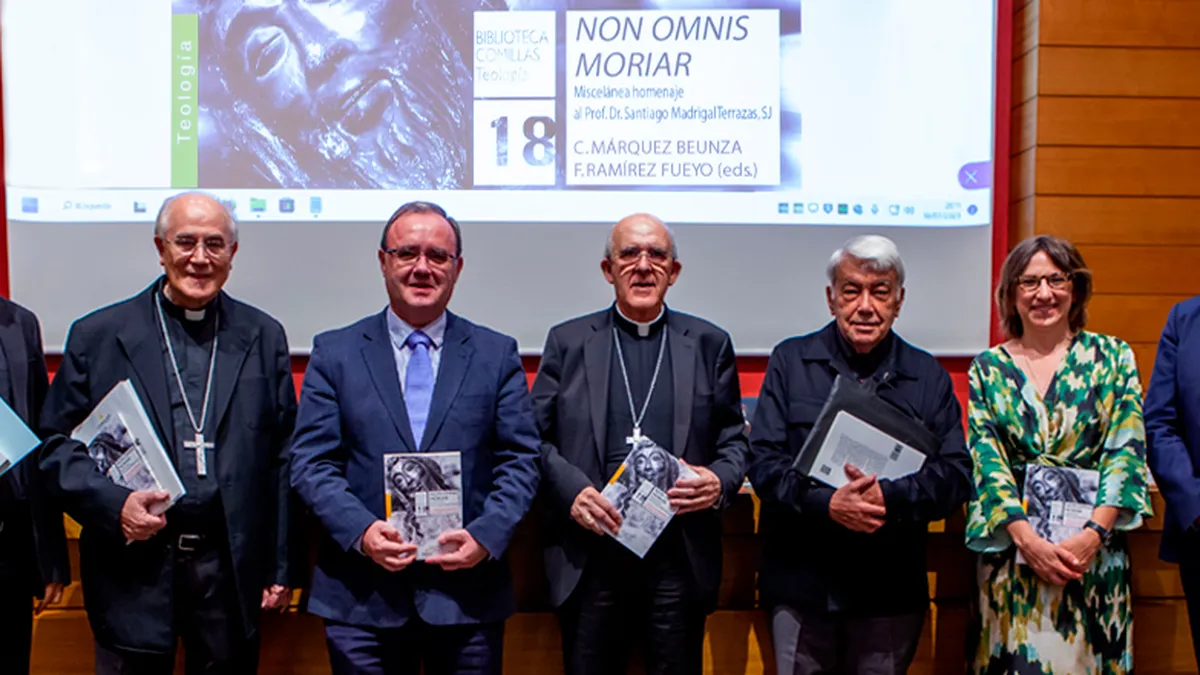 El profesor Santiago Madrigal, SJ, ha recibido un sentido tributo, un honroso homenaje de sus compañeros teólogos, en forma de libro, Non omnis moriar. Una miscelánea presentada en la Universidad Pontificia Comillas, con la participación del rector, Enrique Sanz, SJ; Carlos Osoro, cardenal arzobispo emérito de Madrid; Adolfo González Montes, obispo emérito de Almería; Salvador Pié Ninot, catedrático de Teología Fundamental y de Eclesiología en la Facultad de Teología de Catalunya; Rafael Vázquez, profesor de Teología Dogmática y vicedirector del CSET San Pablo Málaga, y Carmen Márquez, profesora de la Facultad de Teología de Comillas.