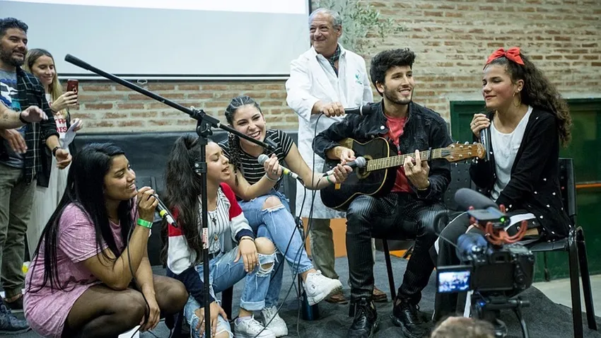 El músico colombiano Sebastián Yatra cantó junto a cientos de jóvenes en Scholas, la fundación creada por el Papa Francisco, ante la sorpresa de los participantes de los talleres de Juego, Arte y Pensamiento que se realizan en la sede de Argentina, en el barrio Carlos Mugica en la Villa 31.