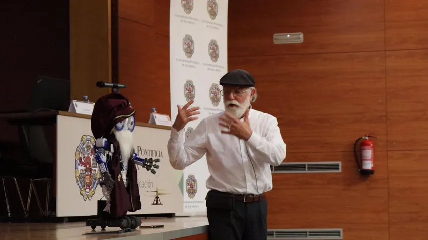 El experto ha demostrado el uso de máquinas de trabajo, como el carrito robot, que se usan como catalizadores para despertar y motivar la emoción del alumno por aprender y trabajar investigando. “Las máquinas son una gran ayuda y hay que preparar a nuestros futuros profesores porque dentro de unos años lo que nos va rodear será la inteligencia artificial”, insiste.