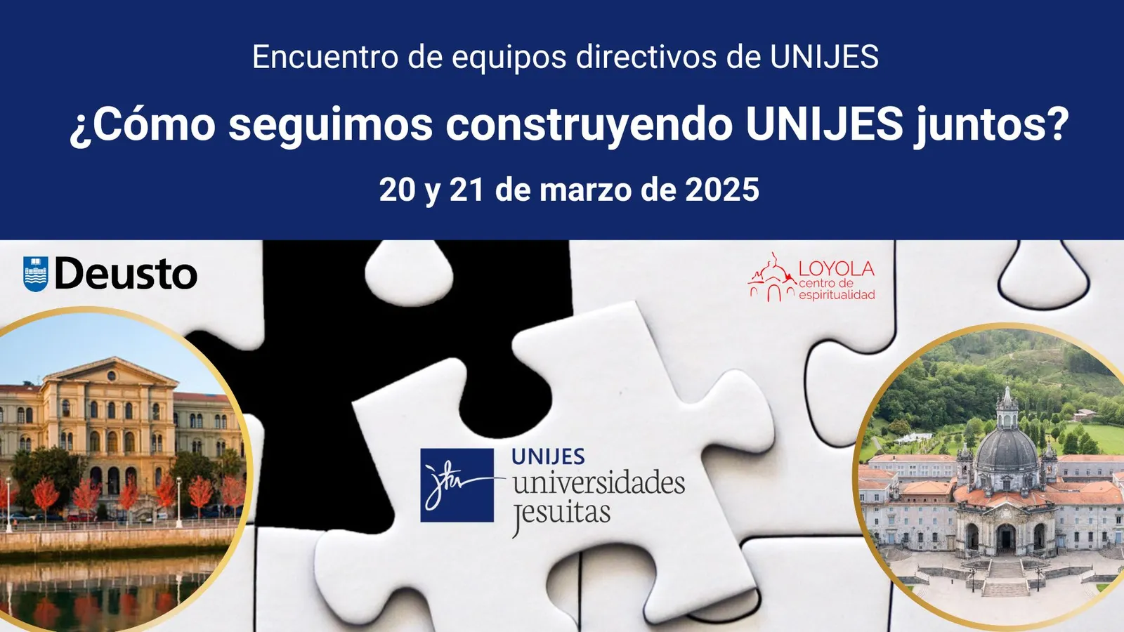 La Universidad de Deusto y el Santuario de Loyola acogen los 20 y 21 de marzo a los equipos directivos de UNIJES, la red universidades de la Compañía de Jesús en España. Bajo el lema “¿Cómo seguimos construyendo UNIJES juntos?”, cerca de 80 representantes institucionales participan en este encuentro clave para decidir el nuevo rumbo de su misión universitaria. Entre los participantes se encuentran rectores, miembros de equipos rectorales, decanales y órganos de dirección de las seis instituciones universitarias y cuatro colegios mayores que confirman UNIJES.