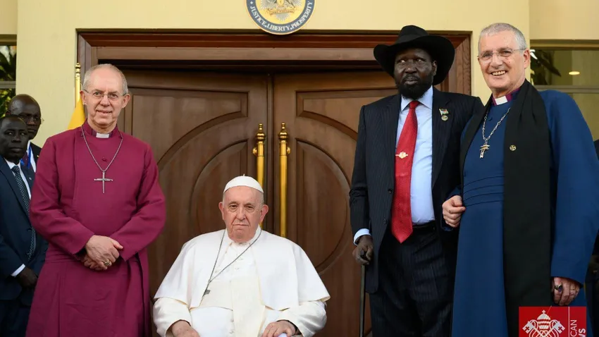 Eran uno, dos y tres. El Papa Francisco; el arzobispo de Canterbury, Justin Welby; y el moderador de la Iglesia de. Escocia, Iain Greenshields. Los 'tres mosqueteros de la paz', unidos en la que se ha convertido en la primera peregrinación ecuménica de la historia, con tres líderes, católico, anglicano y presbiteriano, caminando juntos al país más joven de la Tierra para impulsar la paz.