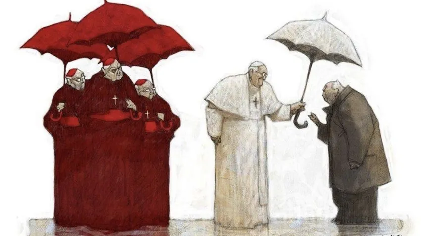 El papa Francisco desde el primer consistorio para la creación de cardenales ha ido advirtiendo a los elegidos sobre la naturaleza del ministerio del cardenalato que nada tiene que ver con las representaciones principescas del pasado de las que permanecen algunos rezagos en el rito de creación y posterior saludo protocolario, en los saludos y costumbres reverenciales. A modo de contraste, se ilustran a continuación exhortaciones de Francisco a los cardenales en los consistorios de su pontificado con pinturas y caricaturas de tiempos pasados que muestran excesos y desviaciones de los así llamados “príncipes” de la Iglesia, no totalmente superados: