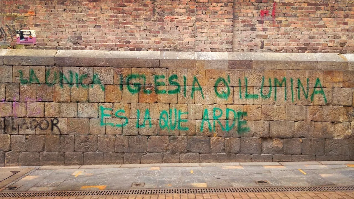 Un grafiti en la pared sur del tempo de las Nieves a pocas cuadras del templo de san Francisco reza así: “La única iglesia que ilumina es la que arde”; fue escrito seguramente minutos antes del conocido desenlace de la marcha. Y como explicación de lo sucedido, otro escrito, en los muros del templo incendiado advierte: “por las que tu Iglesia quemó”.