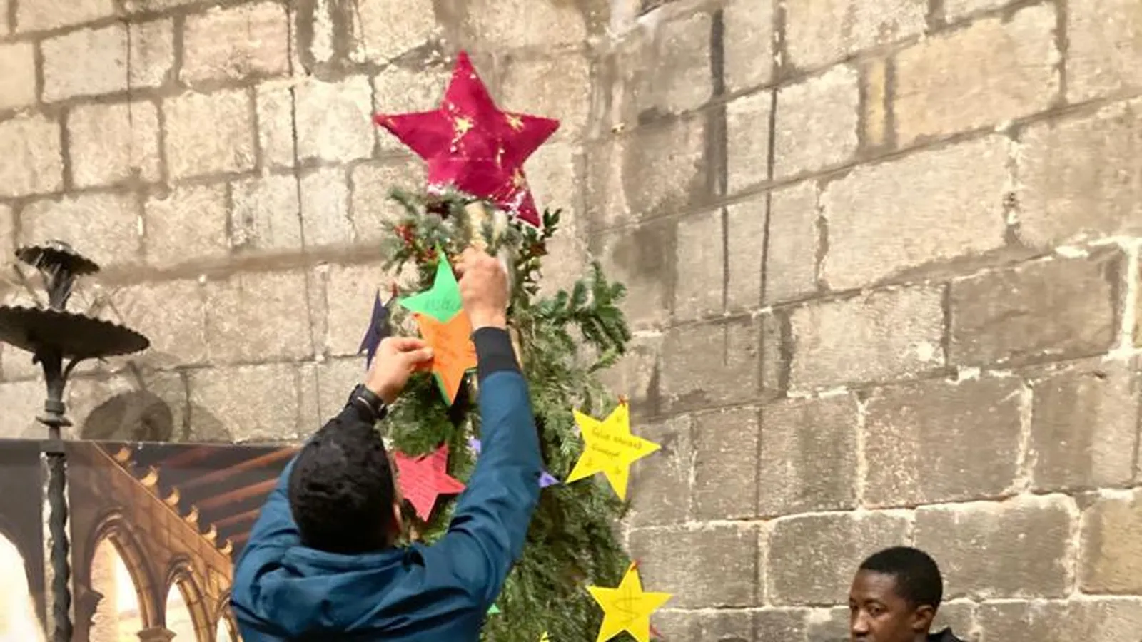 Desde hace unos dias, los acogidos preparan el árbol navideño con estrellas en donde escriben sus deseos y sus mensajes. Algunos emocionantes. Adornan con luces el precioso claustro del siglo XV, y colocan el Nacimiento. Eso, teniendo en cuenta que la mayoría son musulmanes. Però veneran, como sabemos, al que para ellos es "El Profeta Jesús".