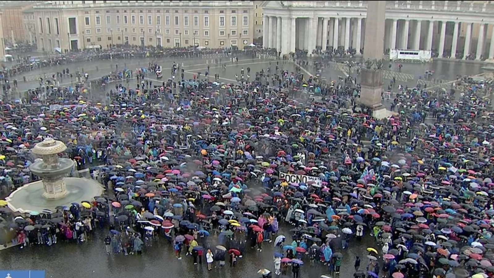 Tras la canonización de Mama Antula y el posterior abrazo con Javier Milei, el Papa saludó a los miles de asistentes que, pese al plomizo y lluvioso cielo romano, se hicieron presentes para rezar el Angelus en la plaza de San Pedro. Muchos de ellos, argentinos, que aplaudieron a la nueva santa a petición de Francisco.