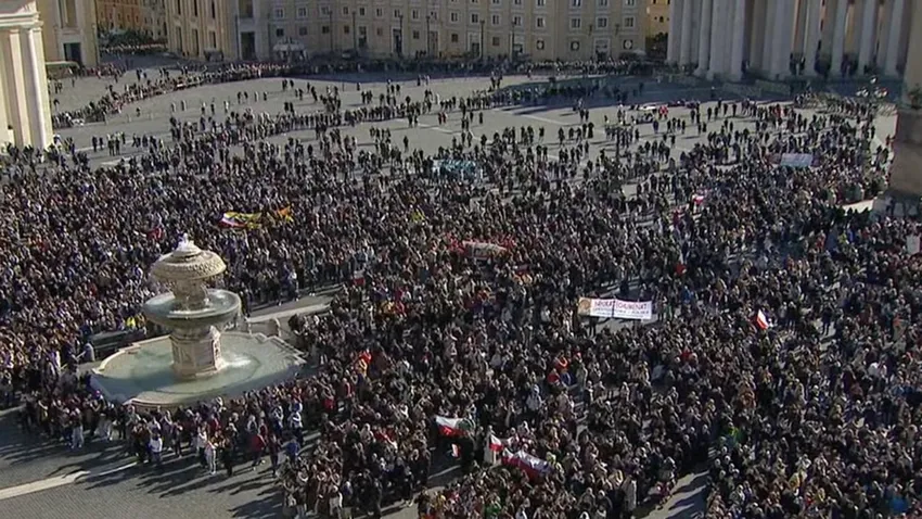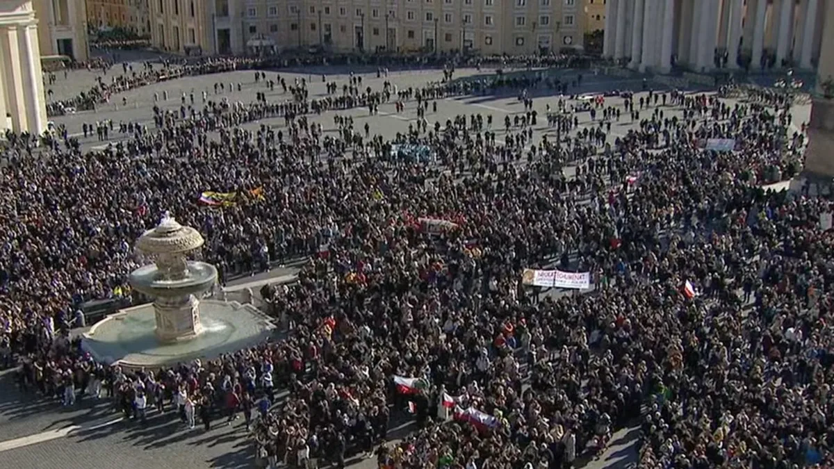 Domingo de la Palabra de Dios en la plaza de San Pedro. El Papa entrega a los fieles (muchos, muchos fieles hoy en la soleada mañana romana) ejemplares del Evangelio, y reflexiona sobre el de este día: "Síganme y los haré pescadores de hombres", el primer mandato de Jesús a quienes, entonces, todavía no eran sus discípulos.