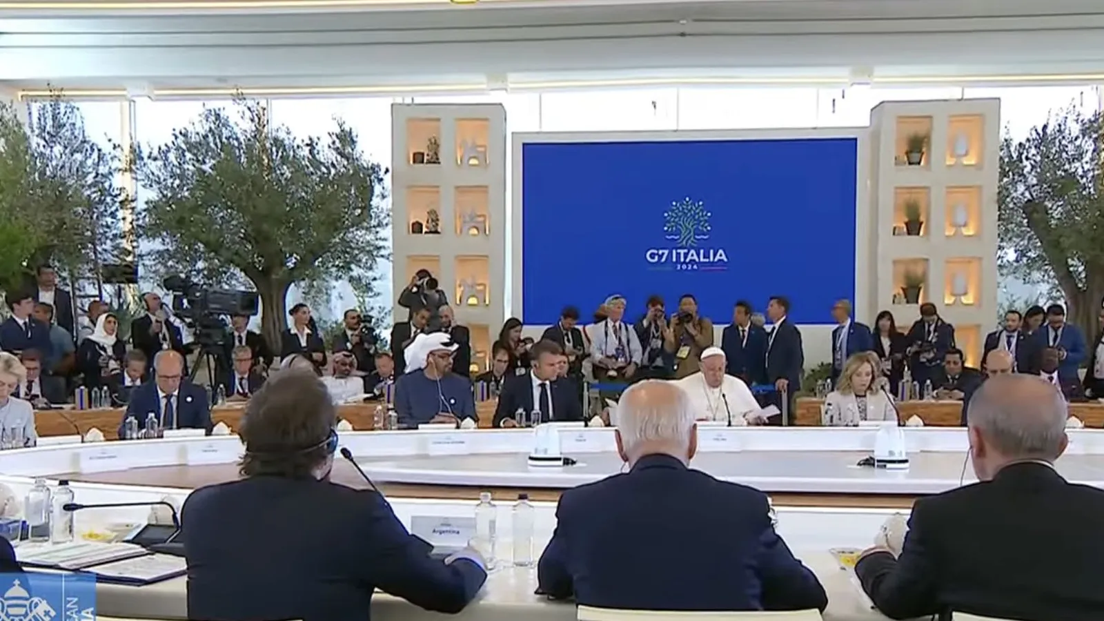 "Mi reflexión sobre los efectos de la inteligencia artificial en el futuro de la humanidad nos lleva así a la consideración de la importancia de la 'sana política' para mirar con esperanza y confianza nuestro futuro", desarrolló Jorge Bergoglio reunido en el complejo de Borgo Egnazia, donde mantiene encuentros bilaterales durante todo el día con los principales referentes que asisten al encuentro, como el estadounidense Joe Biden y el indio Narendra Modi.