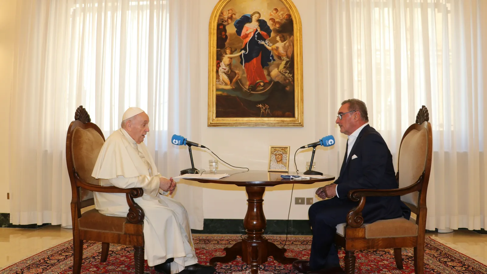 PF: Bueno, si usted ve desde el principio que se empezó a poner en marcha lo que dijeron los cardenales en el precónclave hasta ahora, la reforma está andando paso a paso y bien. El primer documento que marca la línea, tratando de reasumir lo de los cardenales, es 'Evangelii Gaudium'. Que ahí hay un problema en ‘Evangelii Gaudium’ que yo lo quisiera señalar, que es el problema de la predicación. Someter a los fieles a largas clases de teología, de filosofía o de moralismo, que no es la predicación cristiana. Ahí en la 'Evangelii Gaudium' pido una reforma seria de la predicación. Algunos hacen, otros no entienden… Por poner un punto, ¿no? Pero ‘Evangelii Gaudium’ trata de resumir en general como actitudes lo de los cardenales en el precónclave. Y respecto a la constitución apostólica 'Praedicate Evangelium' que se está trabajando en esto, y el último paso es que yo la lea –debo leerla porque la tengo que firmar y la tengo que leer palabra por palabra--, no va a tener nada de nuevo de lo que se está viendo ahora. Quizás algún detalle, algún cambio de dicasterios que se juntan, dos o tres dicasterios más, pero ya está anunciado: por ejemplo, Educación se va a juntar con Cultura. 'Propaganda Fide' se va ajuntar con el dicasterio de la 'Nueva Evangelización'. Está anunciado. No va a haber nada nuevo respecto a lo que se prometió que se iba a hacer. Algunos me dicen: “¿Cuándo saldrá la constitución apostólica de la reforma de la Iglesia, para ver la novedad?”. No. No va a haber nada nuevo. Si hay nuevo, son pequeñas cositas de ajuste. Está en su última parte, que se atrasó con esto de mi enfermedad. Se está cocinando a fuego lento, de tal manera que tome todo esto. Tenga claro que la reforma no será otra cosa que poner en marcha lo de los cardenales, lo que pedimos en el precónclave, y que se está viendo. Se está viendo.