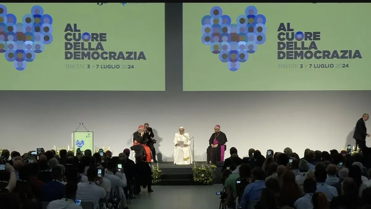 Viaje relámpago del Papa a Trieste en mitad de sus 'vacaciones', para cerrar la 50 Semana Social de los católicos italianos. Francisco llegó a Trieste con algo de adelanto, y fue recibido por el cardenal Zuppi. "Los católicos en Italia no quieren ser un lobby, y nunca se volverán partidistas, porque el único bando que defienden es el de la persona", señaló en su presentación el purpurado, uno de los hombres de confianza de Bergoglio.