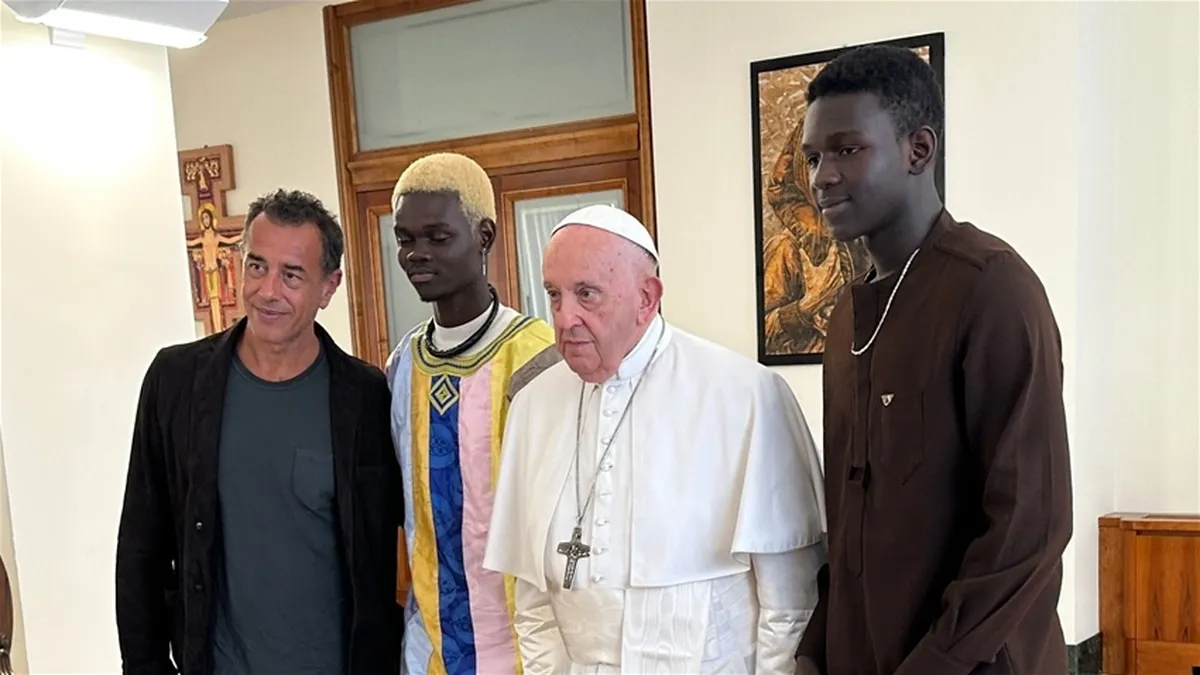 El papa Francisco recibió hoy en su residencia del Vaticano al cineasta Matteo Garrone y al reparto Io Capitano, el filme premiado en la última edición del Festival de Venecia sobre el drama que enfrentan los migrantes del áfrica subsahariana.