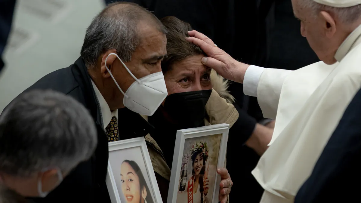 El papa Francisco saludó este miércoles 19 de enero del 2022 al final de la audiencia al matrimonio Flores Chévez, padre boliviano y madre ecuatoriana, que desde hace 30 años viven en Italia, para darles el pésame y expresar su cercanía tras la muerte de sus dos hijas, Antonella y Lorena. Las jóvenes fallecieron en un terrible siniestro de tránsito.