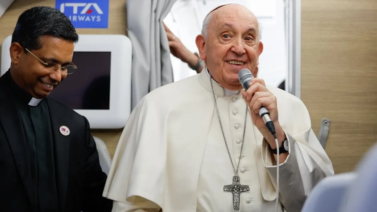 "Lo de Argentina es algo que no está no decidido. Yo querría ir. Es mi pueblo, pero no está decidido. Hay varias coas que resolver antes", zanjó el papa a la pregunta de un viaje a su país.