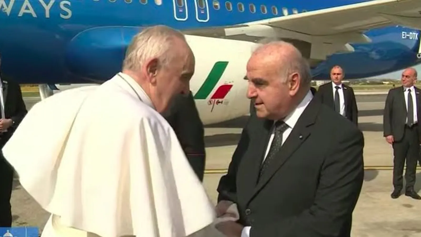 Francisco ya está en Malta. Pocos minutos antes de las diez de la mañana, el vuelo papal aterrizó en el aeropuerto de La Valetta. Bergoglio fue recibido en la escalinata por el Presidente de la República, George William Vella, y su esposa, y por dos pequeños, ataviados con los trajes tradicionales del país, que presentaron una ofrenda floral al Papa.