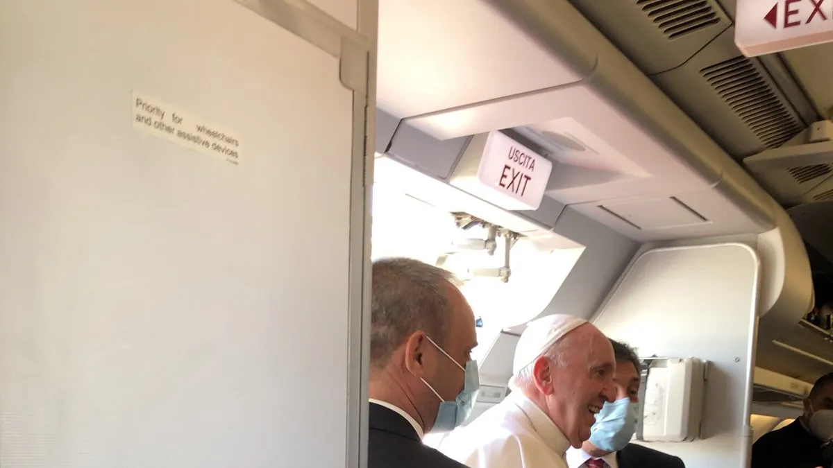A diferencia del vuelo de ida, a la vuelta Francisco sobrevoló suelo de Siria, Turquía y Albania, antes llegar a Italia. Nada más