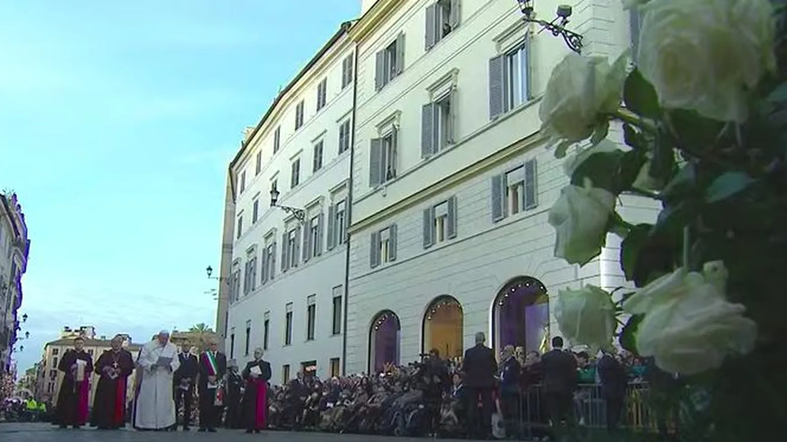 Desde entonces cada año los pontífices acuden a rezar ante el monumento, una columna coronada con una representación de la Virgen, en cuyo brazo los bomberos de Roma, de madrugada, colocan una corona de flores.