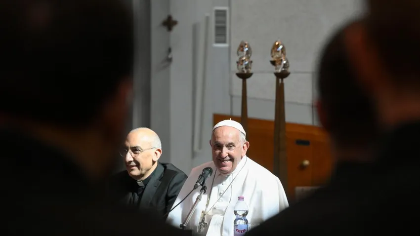 Subiendo a la iglesia dedicada a Jesús Divino Maestro, el Papa fue recibido por los jóvenes sacerdotes (también con fuertes aplausos), algunos -explicó monseñor Michele Di Tolve, delegado para el cuidado del diaconado, el clero y la vida religiosa- recién ordenados en 2024. Francisco abrió el encuentro con una oración y la lectura del Evangelio del día, luego «viendo que nos ha convocado en el día de la memoria de San Pablo VI», dijo Di Tolve, rezó junto a los sacerdotes con la oración que él, el Papa Montini, «nos entregó». A partir de ahí, el ir y venir a puerta cerrada -como en ocasiones anteriores- sobre temas principalmente pastorales.