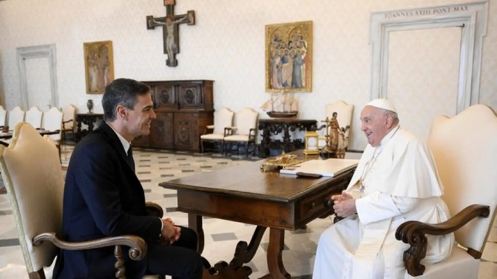En la misma, el presidente del Gobierno recalcó los dos temas principales abordados con el Papa: “las cuestiones que tienen que ver con la paz, con el fin de la guerra, en Ucrania y Oriente Medio”, y sobre migración, “un tema que preocupa, y mucho, al Papa Francisco”.