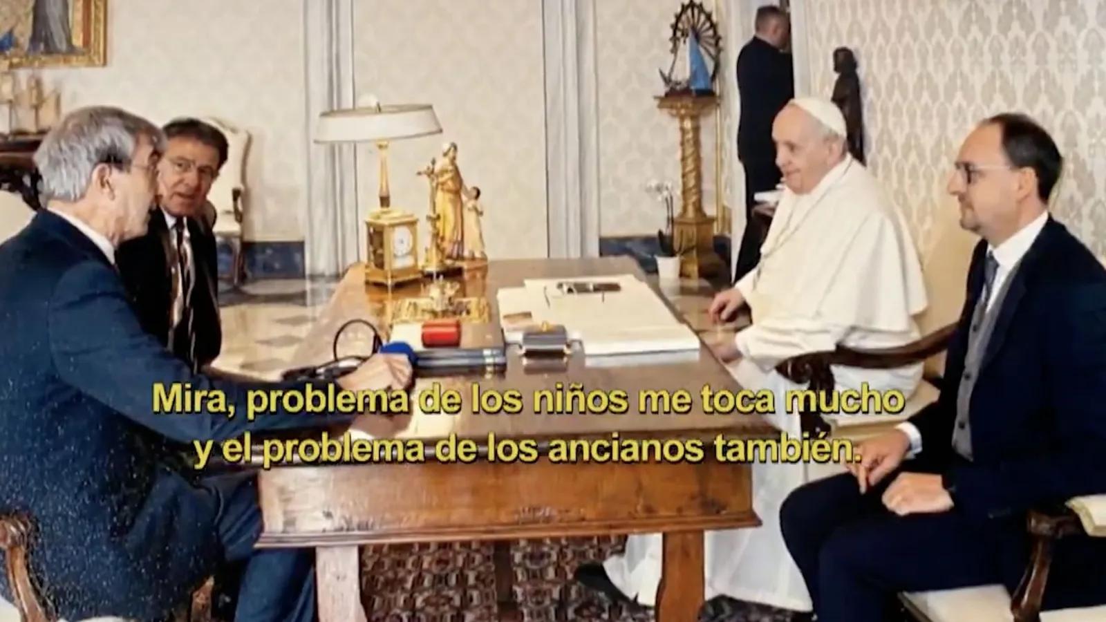 "¿Sueña, tiene pesadillas?", le preguntó Castro. "No, a veces sueño cosas lindas, o recuerdos, pero no cosas que me torturen. No soy de soñar mucho, no toda la noche", contestó el Papa, en unos audios emitidos anoche en Telemundo. ¿Qué lo aflige?”, le preguntó Nelson Castro. “El dolor ajeno. Pensemos en los chicos, ¿no? Los chicos que están muriendo de hambre. Y en países que podrían solucionar el problema. Chicos soldados. A mí el problema de los niños me toca mucho y el problema de los ancianos también, los ancianos abandonados”, respondió.