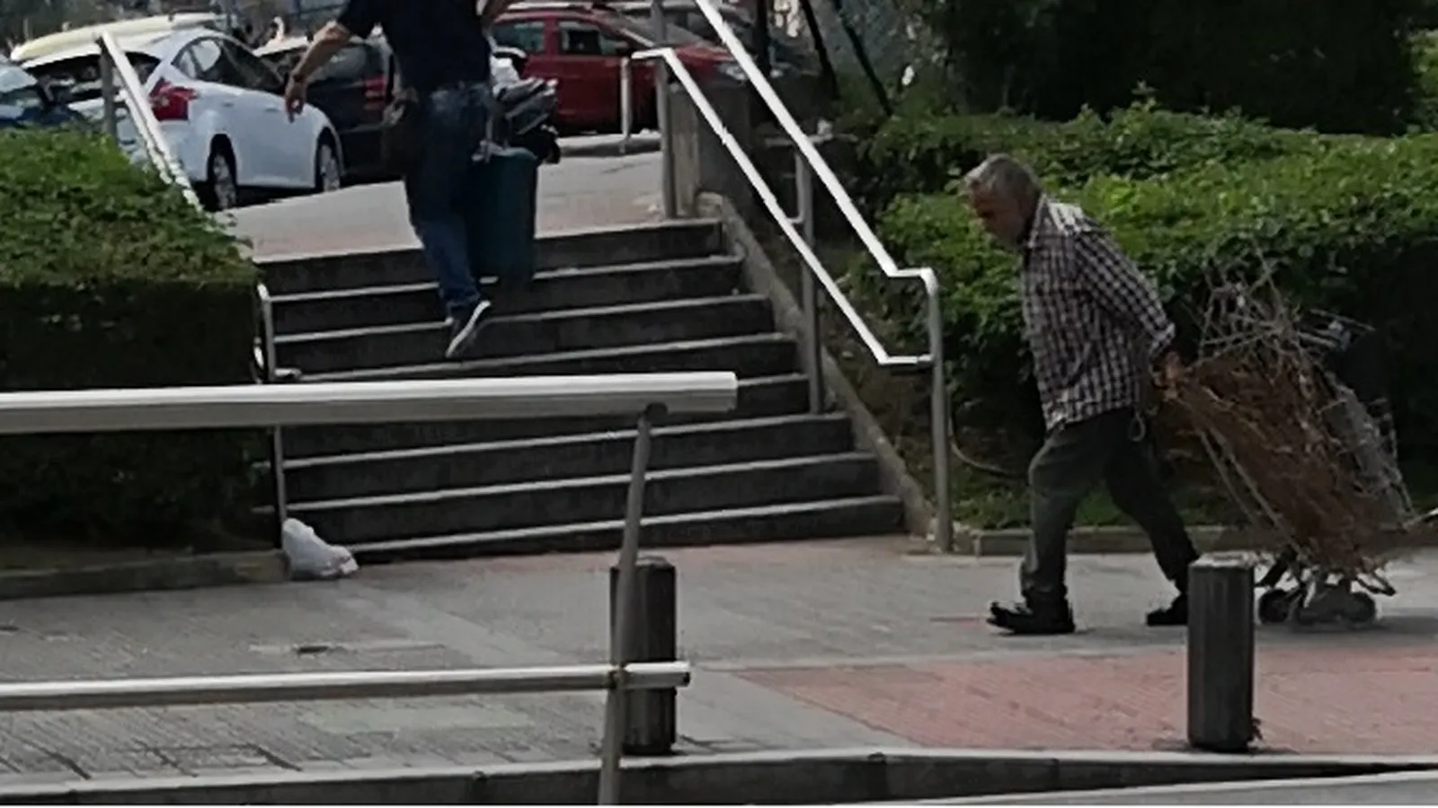 A la salida le esperaba el recolector de botellas, Jesús, al que evitaba e invisibilizaba siempre para no chocar con el y con su ira.