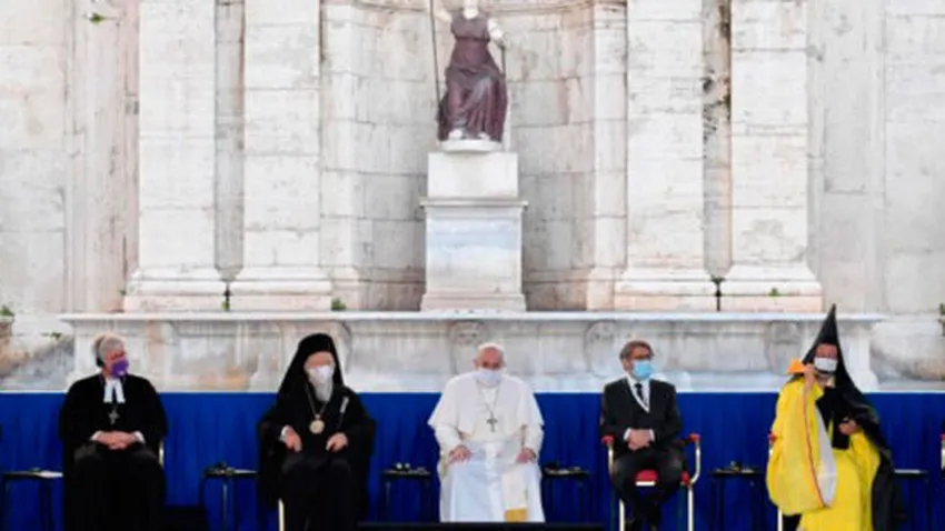 Inmediatamente después, el Papa se reunió en la Piazza del Campidoglio con los líderes religiosos: el de la comunidad judía, Gran Rabino Haïm Korsia de Francia; el del Islam, Mohamed Abdelsalam Abdellatif, secretario general del Comité superior de la fraternidad humana, que recientemente participó en la presentación de la encíclica Fratelli tutti, representando al rector de al-Azhar, de quien ahora, durante el acto de Roma, leyó un hermoso discurso, ya que el gran imán Ahmed el-Tayeb no pudo asistir; por el Budismo, Shoten Minegishi, que ya ha participado en cinco ediciones de las reuniones de oración por la paz; y por la comunidad Sikh, Kamaljit Singh Dhillon. El patriarca Bartolomé I, siempre al lado de Francisco, pero con voz propia. A la ceremonia del Campidoglio, se sumó el presidente de la República Italiana, Sergio Mattarella.