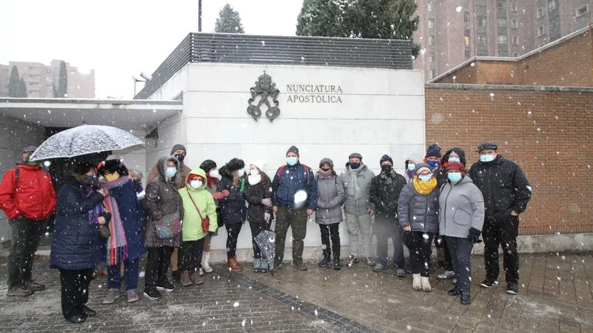 La nieve y el frío no les paran. No lo han hecho durante más de tres meses sin luz, como para hacerlo para acudir, en pleno temporal de nieve, hasta la puerta de la Nunciatura Apostólica para hacer entrega (no al Nuncio, que no estaba para recibirles) de una carta abierta al Papa Francisco en el que piden al Pontífice que se implique en la solución de un problema que afecta a más de 4.000 personas, muchos de ellos niños.
